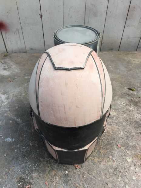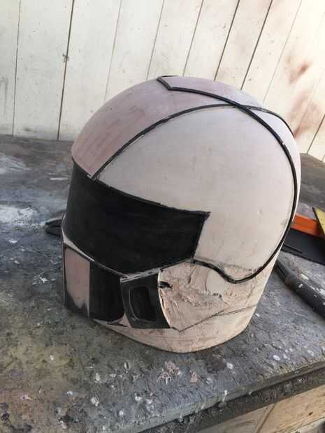 Por lo tanto, este diseño de casco se supone que como es capas de una clase de colocación sobre otro para que se vea como si fuera un tipo multi del pedazo de cosa. para lograr este look, primero dibujé mis líneas y utilizando el mismo método como lo hice en la visera, cortar tiras de 1/8" de ABS y había pegado a la forma y sirva mi borde duro"limpio"para el nivel. Entonces utilizaría llenador del cuerpo entre estas líneas y la forma de abajo con la escofina y papel de grano arena 100 como antes.