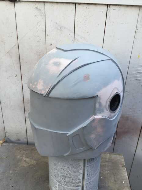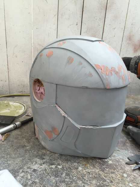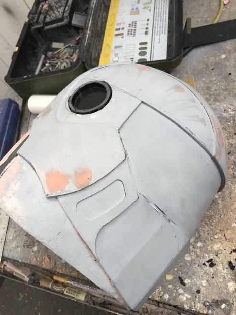 Así que para la zona de oreja tomó un poco de PVC (también hecho del ABS) y encolar pequeñas secciones de él a una plaza de ABS plana. Luego recortar la parte sobrante y había mezclado en los lados del casco con más relleno después de cortar los agujeros con un accesorio de la sierra mi taladro.