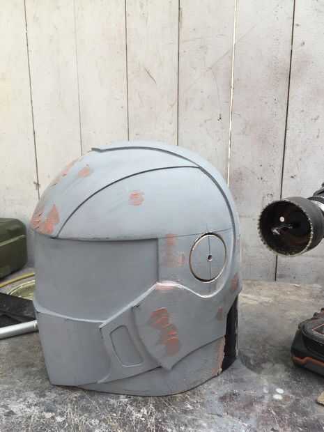 Los discos para los oídos fueron hechos con una clavija de madera en mi torno y moldeados para hacer 2 discos idénticos que luego fueron pegados en los huecos de PVC que había mezclado en el casco.