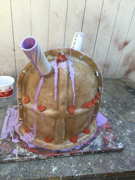 Cubres la escultura con una capa de arcilla de agua en la forma que quieras tu caucho molde tomar y cubierta con relleno plástico, resina y mat de fibra de vidrio, quitar la chaqueta, retirar de la arcilla, en el maestro y llene la negativa con su goma.