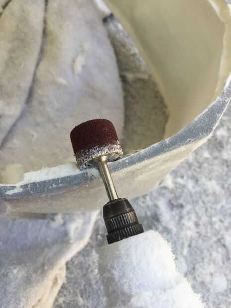 El back-end del tambor de lijar que se utilizó para crear un área de labio en la parte interior del bastidor se apoye con una visera en. Hice lo mismo para la ventilación de mejilla y discos de la oreja.