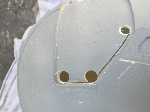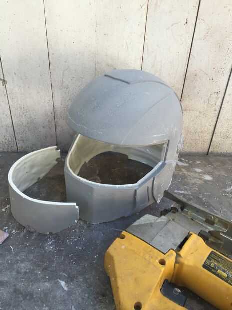 I taladrar agujeros piloto y utiliza una sierra de calar para cortar la visera.