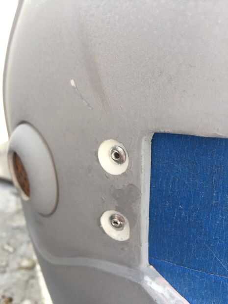 Cubierta de la pantalla en cinta de enmascarar y fijarla en el casco con tornillos para madera (temporal).