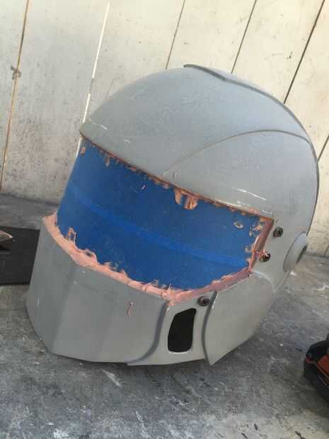 Primero crear un visor de imitación del ABS y ajustarla en el casco. La pantalla descansa sobre el labio que se creó cuando recortar el bastidor.
