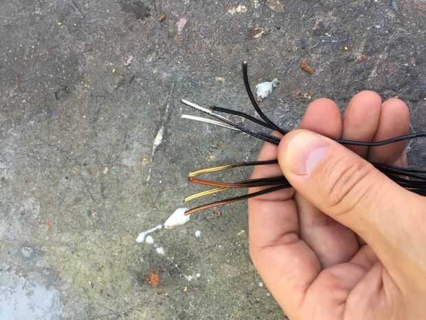 No quiero 4 cables al azar fuera del casco, así que corte 4 longitudes de 22 alambre de calibre y pintado los colores extremos y consejos para ayudar a diferenciarlos cuando yo le conecte en línea.