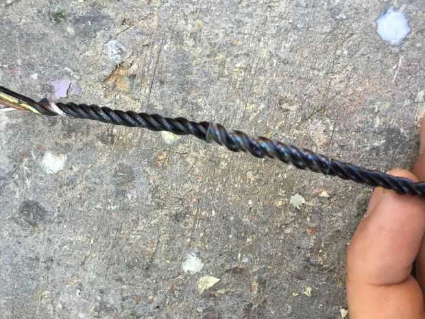 Pinte ambos extremos del 1 alambre de oro, otra plata y otro cobre (acabo de tener estos colores poner alrededor) dejando el 4 º hilo negro.
