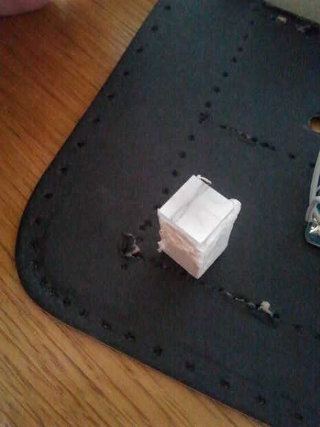 Interior, utiliza una pieza mecanizada de plástico grueso (porque hemos tenido, pero cinta adhesiva o transparente epoxy haría, también) y un acolchado de espuma para presionar el cristal de centelleo contra el SiPM. Quieres buena de acoplamiento óptico aquí. Las caras del scintillator que no enfrentan el SiPM están envueltos en cinta de teflon blanca (sí, cinta de plomería de tienda HW) para reflejar tanta luz como sea posible hacia el SiPM.