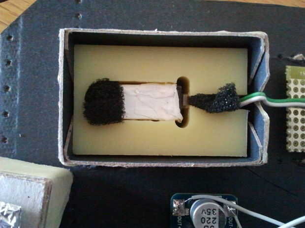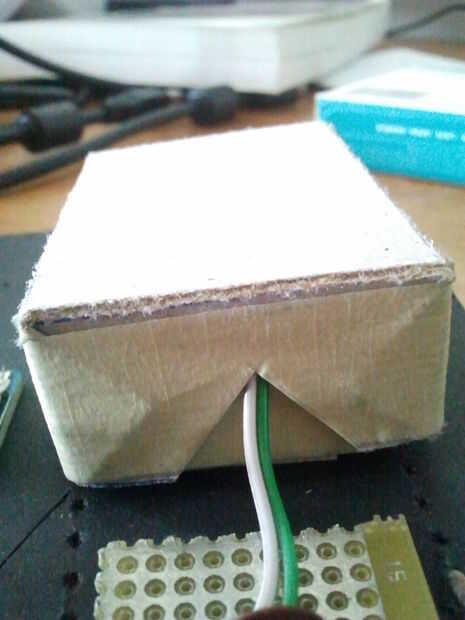 Para medir destellos de luz esto dim, debemos obviamente evitar que cualquier luz que entra en la cámara de detección. Por esta razón hemos construido una caja de cartón para encerrarlo.