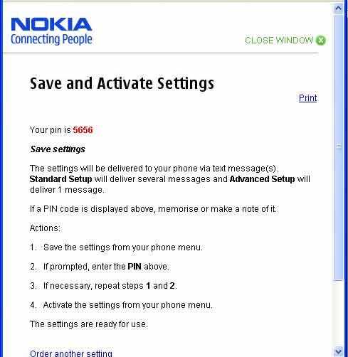 Deja esta ventana abierta y una vez que los ajustes se han salvado a su sciphone, haga clic en [configuración de otro orden] en la parte inferior de esta ventana. Esto le llevará volver a la pantalla de visualización de las opciones de configuración (paso 3) Repita los pasos 3 a 8 nuevo con los otros dos ajustes: MMS e Internet.