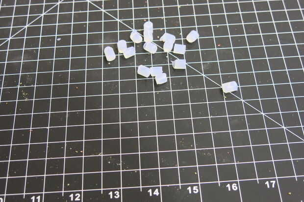 Hacer tus palitos de pegamento en pequeños pedazos que las clavijas de empuje en a. Estos pueden ser aproximadamente la mitad una pulgada de largo. Se utilizan 1,5 palos de pegamento para todo el proyecto.