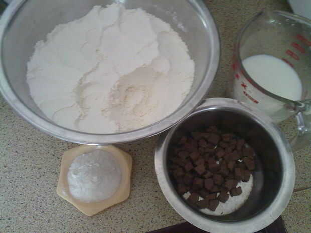 http://www.savynaturalista.com/2013/09/06/chocolate-covered-scone-bar/Receta de chocolate Bar cubierto de Scone:2 1/4 tazas de harina (más para quitar el polvo)1/2 cucharadita de polvo de hornear1/2 cdta sal1/2 taza azúcar3/4 taza leche (yo sin lacto