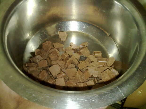 2/3 taza de chocolate chips (no pude encontrar ninguna así que corte para cocinar chocolate en pedazos)