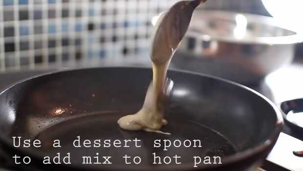 Pala hasta una cucharada completa de mezcla y caen sobre el pan caliente