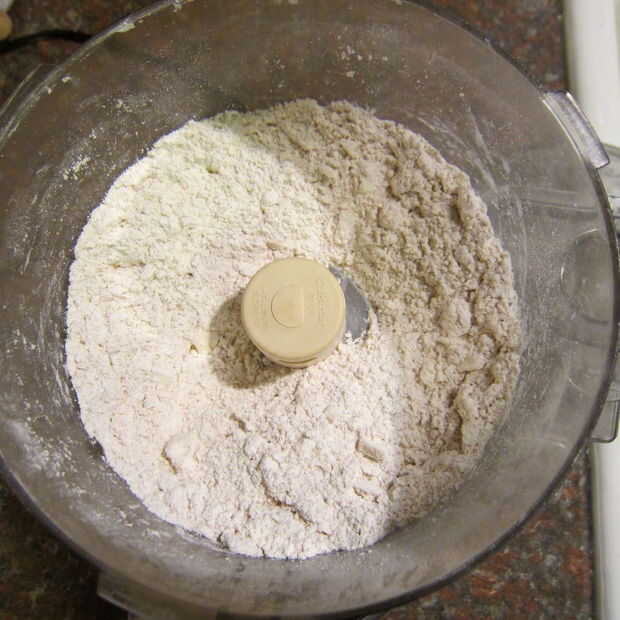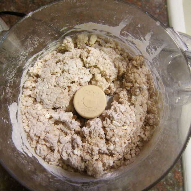 Agregar la leche y la vainilla y pulso otra vez hasta que mezcla viene juntos. Si agregar seca fruta lo hacen en este momento. No con pulso. Las migas secas en el fondo están muy bien.