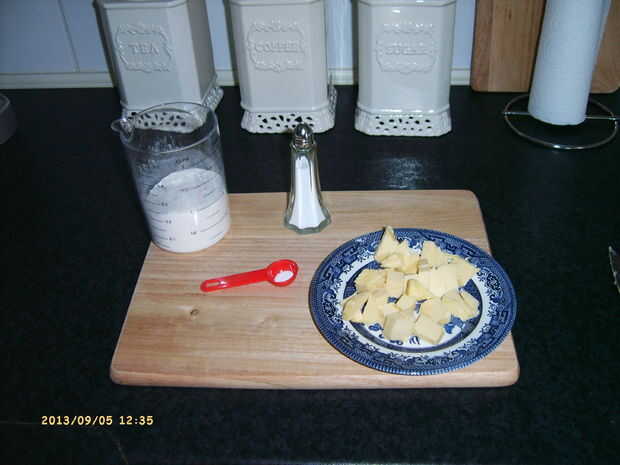 Mi hija quería hacer scones para mi esposa en el día de la madre. Se trata de cómo hizo. Estaban húmedos y deliciosos servidos junto al helado de vainilla. Si quieres intentar algo un poco diferente, le animo a probar esto.¡ Disfrute!Paso 1: ingredie