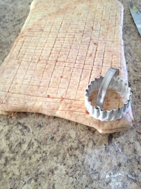 En últimas divisiones rectangulares, como se muestra y cortar con Cortador redondo.