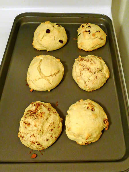 Para mi scones añadí arándanos dos scones, nueces y canela para dos bollos, virutas de chocolate de 3 bollos y zumo de limón a un scone.