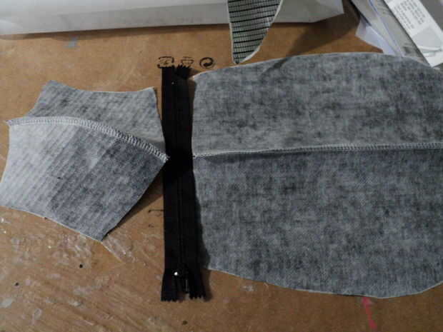 Serge en la parte superior del sombrero con los lados. Tuve que cambiar a la máquina de coser por la parte cerca de la cremallera. Usted tendrá que tener cuidado cerca de la cremallera para que la aguja no golpea una parte difícil de la cremallera y dañar su máquina de coser.