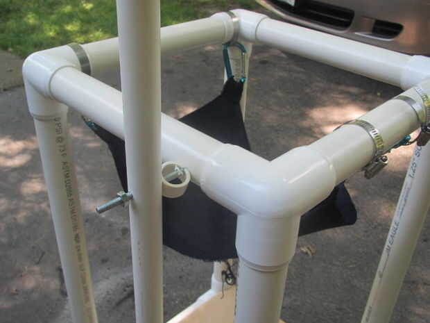 3. Conecte el marco con un tornillo y tuerca, tenga en cuenta que yo Coloque a un espaciador (con tubo de PVC) entre el putter y el marco para que el putter no raspe contra el marco.