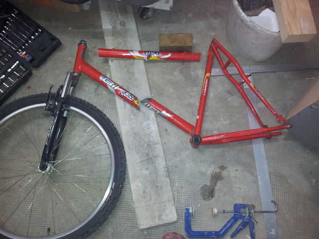 Para obtener la perpendicular tuve que doblar la 2 º parte (originalmente el tubo del asiento) del marco.