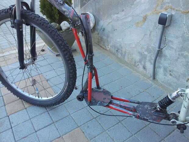 Algunos abandonos personalizados para la rueda trasera, lo hice pude ejecutar diversas ruedas en la parte posterior. Por supuesto si cambia las ruedas necesita restablecer los montajes de freno. Conseguir unos frenos en la cosa antes de llegar demasiado excitado, utilicé los montajes de freno de la bicicleta de doner y soldada en su lugar.
