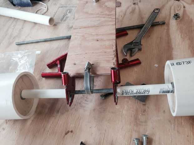 El Axel es una barra de metal que se utiliza para sincronizar las ruedas mientras que girando para asegurar que el vehículo permanece recto y continúa con el impulso adquirido. El tamaño del eje es relativo al tamaño del agujero que perforó en los dos pares de ruedas y el tamaño de las ruedas.  El más grande es las ruedas más grandes el eje tendrá que ser. El eje también debe ser lo suficientemente robustos para soportar el peso de un ser humano y la bicicleta. Si el eje se dobla la vespa está comprometida porque las ruedas dejará de dirigir directamente. El axel se mantiene unida a la silla de madera por un lazo de la manguera. La manguera de lazos es apretar en su lugar. La barra metálica expuesta entonces está cubierta por 2 piezas separadas de PVC, por lo que el eje se desliza hacia adelante y hacia atrás.