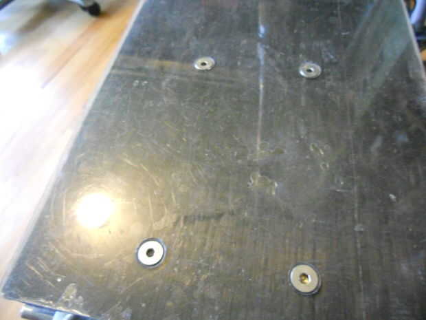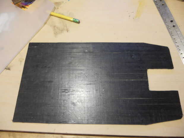 En el espíritu de la construcción tanto de la vespa como sea posible de partes que tenían en mano, hice una cubierta nueva de algunos de mi bicicleta de bambú de la fibra de carbono. Puesto que la fibra de carbono estaba en forma de remolque de 12 K, tuve que forma en el paño yo mismo. Construyó un marco de madera con clavos espaciados cada 1/2" alrededor de sus bordes y utilizado para envolver dos capas ortogonales de fibra de carbono a la vez. Una vez que apliqué epoxi para la fibra, sujeta el marco a otra pieza de madera para exprimir el exceso de epoxy y crear una hoja plana. Después de 5 o 6 repeticiones, corté la cubierta a la forma. Pegué una capa de 1/8 de policarbonato encima de la fibra de carbono, porque la fibra de carbono no es mismo impacto o resistente a la abrasión. La nueva cubierta fue atornillada encima de una vieja con tornillos de acero inoxidable cabeza avellanada.