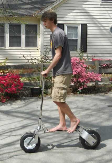 En mi diseño original de la horquilla, la rueda delantera era estaba centrada delante del eje de la columna de dirección. Mientras este diseño me funcionaba, hice unos paseos de prueba de tracción humana de esta configuración y encontrar el manejo ser pobre. Posición adelantada del volante hizo imposible inclinarse mientras se da vuelta, porque si usted se inclina en una curva, la rueda quiere naturalmente lejos de la dirección de giro del eslabón giratorio. Además, a altas velocidades me di cuenta de que habría el riesgo de la rueda delantera "castering" - tratando de girar 180 grados.