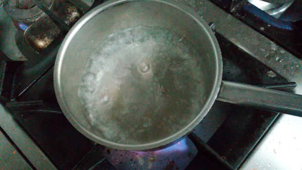 ~ Poner una cacerola con agua salada a hervir rápido, mientras tanto meter un pequeño agujero en la parte inferior del huevo, con el fin de liberar el aire dentro de los huevos (evitando que la cáscara se agriete durante la cocción)