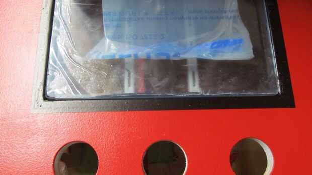 Con solución de energía negra, clued una hoja de plexiglás de 8mm para la protección de la pantalla. Deje que se seque durante la noche con pesos en él.