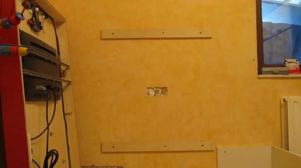 Para montar en la pared, utilicé 2 tableros de madera. Fijar a la pared y atornillar el ScottTV