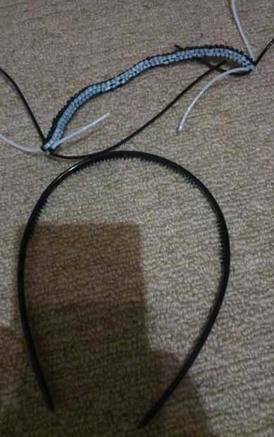 2. Tomar la cinta y pegamento caliente de la pulsera de puntada del ladrillo en la diadema