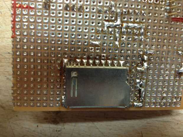 El componente sólo complicado soldar fue el zócalo de la tarjeta SD ya que tenía pines muy pequeños.