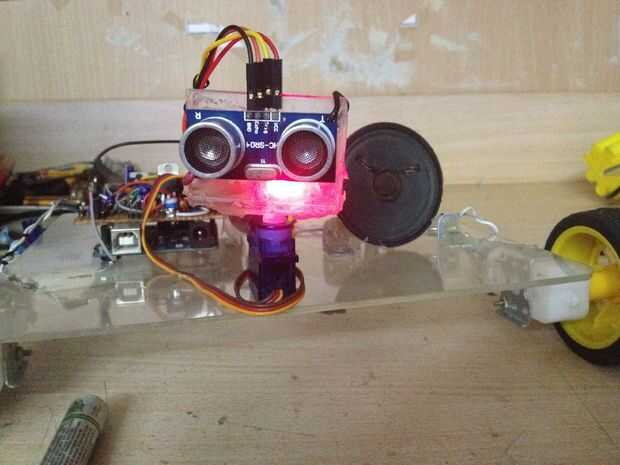 Para la cabeza hcsr04 que utilicé un servo de 9g que montara el HCSR04 distancia sensor utilizando un trozo de plástico y un cuerno del servo.