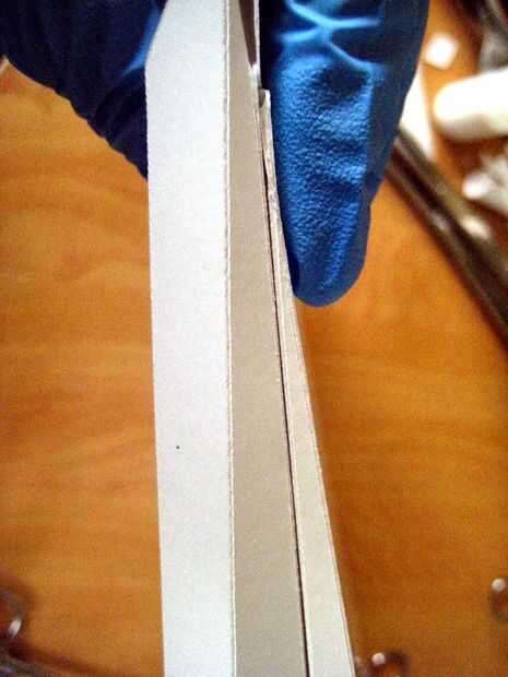 Aplicar una ligera cantidad de pegamento a lo largo de las pestañas dobladas.