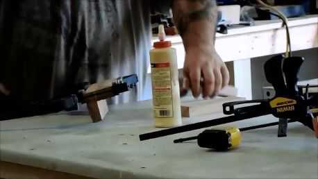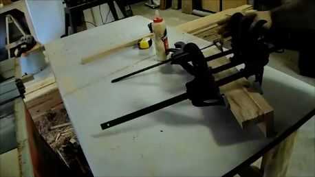 Pegar las tablas de pitillo a un lado de las piernas más amplios. Sujete firmemente. no hay necesidad de usar clavos o tornillos aquí. Solo pegamento. de la abrazadera y déjelo secar :)