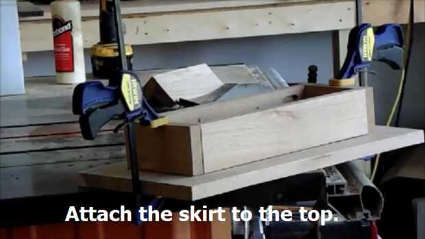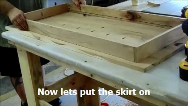 Una vez más, el procedimiento es el mismo para ambos el taburete y la mesa. Usando los agujeros de bolsada y tornillos de agujero de bolsillo, simplemente coloque la falda a la parte superior. real simple. Pégalo y atornillarlo y déjelo secar.