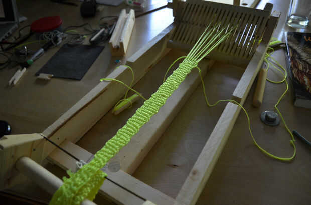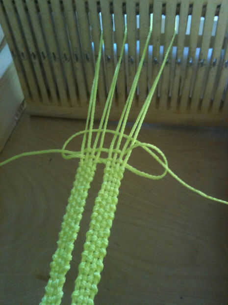 Añadir 3 pares de hilos de urdimbre a través de las ranuras vacías.