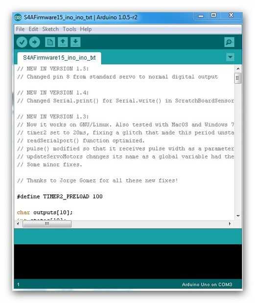 La Junta de trabajo con Scratch para Arduino (S4A) es necesario instalar el firmware de cero bosquejo usando la Arduino SDE (véase el archivo de firmware) esto es el mismo archivo de S4A y es totalmente gratuito. Una vez instalado, que es para el software de Arduino tiene que obtener la aplicación de S4A (otra vez ¡ descargar gratis desde la siguiente ubicación. Scratch para Arduino (S4A) de http://s4a.cat/ ir al link de la página web arriba y desplácese hasta la sección "descargar e instalar" y tome usted la versión adecuada para su sistema operativo (utilizo windows). Una vez instalado tienes un icono adicional que cuando abrió voluntad verá algo como la última imagen en este paso. Tenga en cuenta que la aplicación se iniciará buscando su Arduino y el mensaje desaparecerá sólo cuando se ha comprobado lo conecte para arriba. Una vez conectado el monitor de Arduino puerto comenzará ciclo una serie de números - esto es sólo la información monitoreada desde la Junta por la aplicación