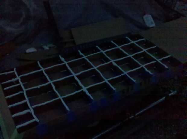 Fui a todo el mundo favorito chino tienda (WalMart) y compró el cuadro más grande llevó, comentar el heck fuera de él (es cierto, rara vez utiliza una cinta métrica para este proyecto en particular) y comenzó a cortar mis soportes interiores, con una plaza de estructura para mantener las tiras de una anchura igual.