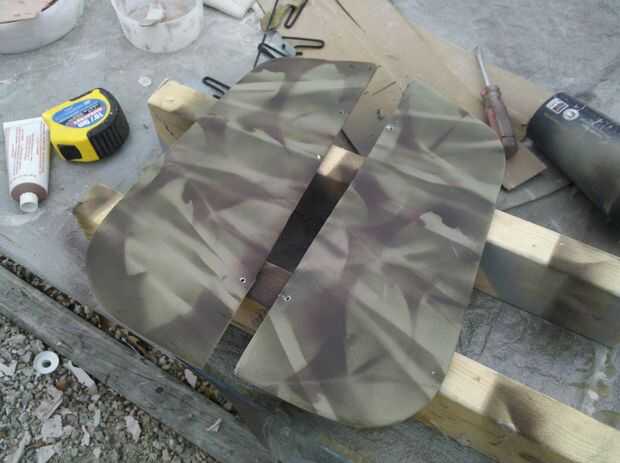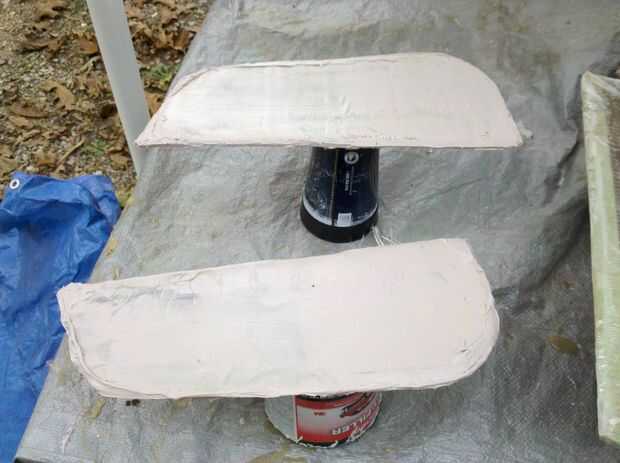 Ahora que mis aletas estaban fuera del camino, ya era hora para el part...fiberglassing "fácil" del casco. Las caras planas del casco hizo mucho menos frustrante de colocación, aunque todavía no sabía sobre la cinta las costuras (véase aprendizaje momento-paso 3).