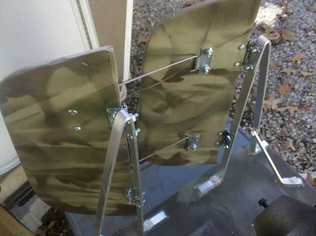 Me arrancaron los pasadores de unas bisagras pequeñas galvanizados y pegados y atornillados a las aletas en el borde de ataque para la fijación de los mástiles y en el interior de cada aleta para montar los vínculos de control a.