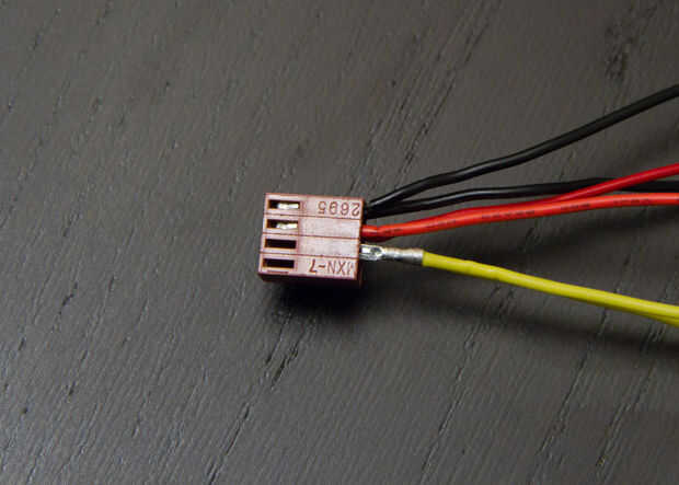 Deslizar el terminal de conexión con dos cables en la ranura correspondiente en la caja de conexión. Asegúrese de que entra todo el camino. Si usted está tranquilo puede ella un pequeño clic cuando la púa aparece en su lugar.