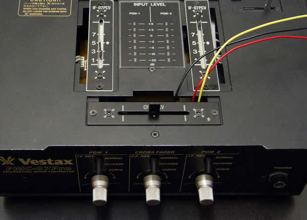 Cuidadosamente vuelva a colocar el cable Y y el crossfader en el mezclador. Asegurarse de que los cables permanezcan fuera de la batidora... en serio... hazlo.