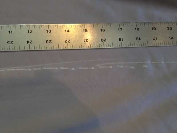 Utilizar la tiza para trazar a lo largo de la regla de sastre del borde superior de la chaqueta hasta llegar a su fondo.