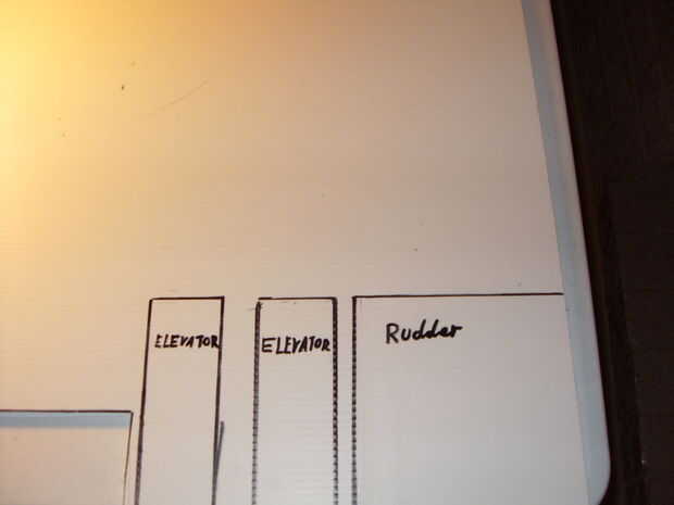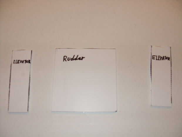 Los dos ascensores son 150mm de largo y 5mm de ancho. El timón es 150mm de longitud y 150mm de ancho. recuerda que esto es sólo la forma básica, y darán forma a todo lo más tarde.