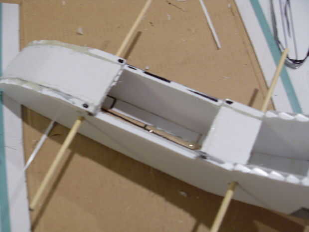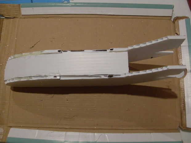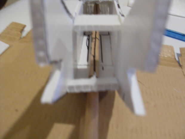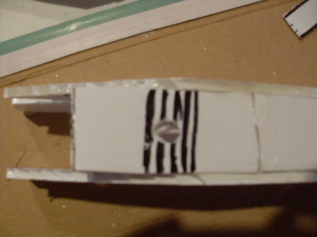 En primer lugar tomar uno de sus vainas y una tira de Unión y encolarlos en el borde como se muestra. Porque el ala es nuestro punto de acceso al interior y electrónica, tendrá que ser desmontable y totalmente al ras. Antes de conectar el pod juntos, usted necesita marcar donde se corte una ranura en el pod para el ala que tendrá que colocar el ala. Para ello, utilizando un marcador permanente marca la anchura de la hoja donde quieres cortar la tira de Unión. corte entre. no se olvide de mirar las fotos de ayuda ya que tienen un montón de notas útiles.