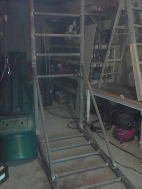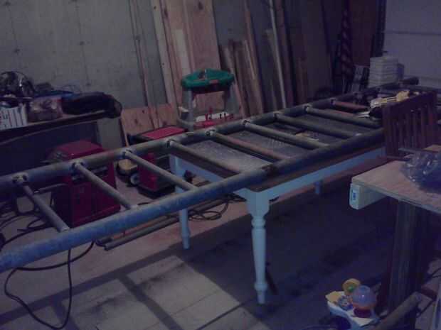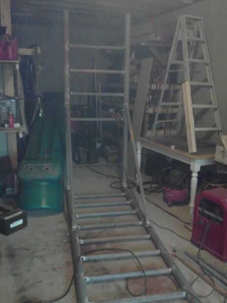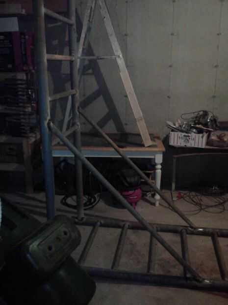 9-11. puso mis peldaños en los centros de un pie y lo hizo mi soldadura de tachuela. ponga para arriba en una mesa para tomar mi granos alrededor de todo el camino