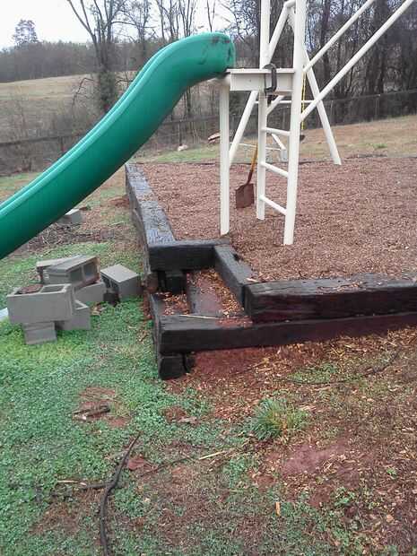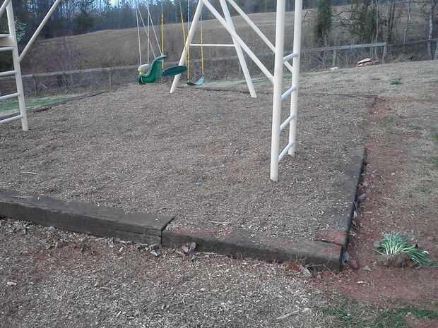 El primer lazos de ferrocarril few(10) que usé eran viejos lazos desechados que estaban libres excepto tiempo dolor y viajes. Mi intención fue poner a nivel una capa y aumentar con el grado. El primer bit de pajote fue un regalo de la promoción de un tipo de árbol local. Estaba contento de ti llevarlo gratis porque normalmente tiene que pagar a la descarga. Había una gran cantidad de palos más grandes pero no era difícil de clasificar como me mudé. Una vez que di cuenta de cuánto tenía, se ha cambiado el plan. Llevé el frente a nivel con la parte posterior. Tiene una superficie firme y animosa, grande para caer y saltar de la escalinata y barras.