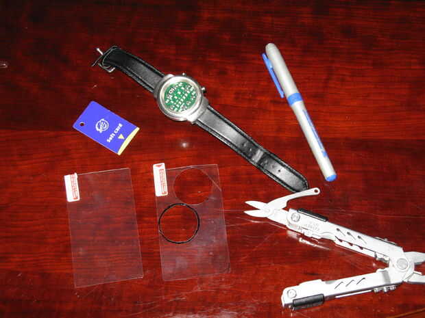 1.) ver Screenguard 2.) 3.) Screenguard o tarjeta de crédito 4.) la cinta scotch magic 5.) marcador permanente (debe ser de punta fina) 6.) buen par de tijeras 7.) Windex y toallas de papel
